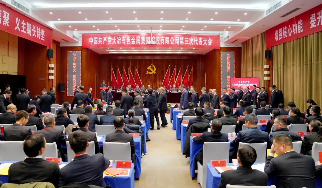 1月20日,中國共產黨大冶有色金屬集團控股有限公司第三次代表大會勝利召開,會議以習近平新時代中國特色社會主義思想為指導,深入學習貫徹黨的二十大和黨的二十屆三中全會精神,深化落實習近平總書記關于國有企業改革發展和黨的建設的重要論述以及對中國有色集團三次重要指示批示精神,全面回顧總結了第二次黨代會以來各項工作進展和取得的成效,分析當前面臨的形勢,明確今后一個時期的奮斗目標和重要任務。黃石市委副書記郝勝勇,中國有色集團黨委委員、副總經理王焱,公司老領導羅家炳、王正立受邀出席本次大會。
